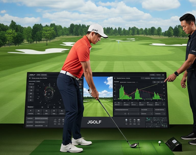 Buchen Sie eine Sitzung mit unserem innovativen JGolf-Simulator für präzises Training.